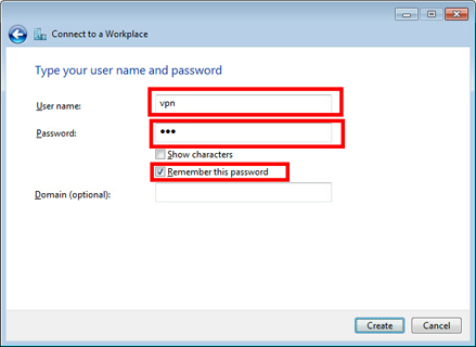 input "vpn" (3-letters) on both username